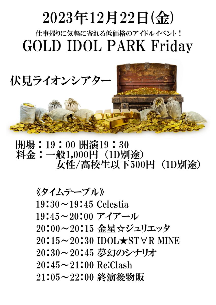 一般1,000円 女性/高校生以下500円(1ドリンク別途)